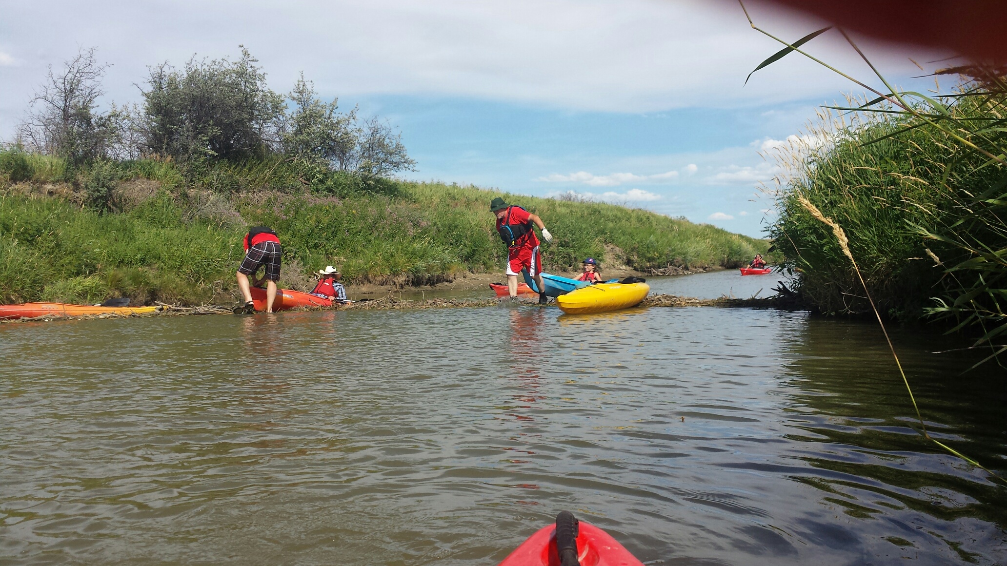 Upon arrival at the Frenchman Valley campground, we were immediately greeted and signed up for the kayaking trip along the Frenchman River. With a group of about 15, we leisurely paddled down the river about 30 minutes, then back again. Unfortunately, the lack of rainfall that summer had left the depth of the river to about 12 inches in a few spots and the kayak would just squeak over the bottom. But the trip was good for the beginner kayaker, with no current to speak of, and my daughter (the youngest of the group) didn’t have any trouble negotiating the water. The guides even treated us to the world’s easiest portage! At a beaver dam, they got out and pulled us over the sticks and mud so we didn’t have to do anything! Awesome!!